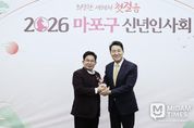 미담타임스 정주환 기자 | 마포구는 1월 7일 마포아트센터에서 소통과 화합을 나누는 ‘2026 마포구 신년인사회’를 개최했다. 이날 신년인사회에는 박강수 마포구청장을 비롯해 지역 내 유관기관장과 주민대표 등 주요 내빈도 함께해 새해 덕담을 전하며 자리를 빛냈다. 특히 이번 행사에는 오세훈 서울시장도 참석해 마포구민과 따뜻한 새해 인사를 나누며 희망과 활력이 가득한 한 해를 기원했다. 신년인사회는 마포의 아름다운 사계절을 담은 마포사계 영상 시청을 시작으로 국립경찰교향악단의 축하공연, 구민 새해소망과 자매도시 새해인사 영상 시청 순으로 진행됐다. 이후 박강수 마포구청장의 새해 덕담과 신년사가 이어졌다. 박강수 마포구청장은 “구청장의 한 시간은 36만 마포구민의 한 시간을 모은 것과 같다”라고 구청장으로서의 책임감을 강조하며, “단 한 순간도 허투루 쓰지 않겠다는 마음으로 현장을 누벼왔다”라고 신년사의 문을 열었다. 이어 마포구의 눈부신 발전과 결실은 구민의 관심과 참여가 있었기에 가능했다며, 그 공로를 구민에게 돌렸다. 이와 함께 서울시가 사용하던 마포유수지 부지
