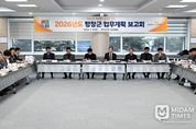 미담타임스 정인화 기자 | 평창군은 9일 군청 대회의실에서 군수, 부군수를 비롯한 부서장들이 참석한 가운데 2026년도 업무 계획 보고회를 개최했다. 보고회는 2025년도 부서별 주요 성과와 2026년도 주요 업무 계획을 공유하고 부서 간 협업할 사항을 토론하는 시간으로 진행됐다. 군은 2025년 주요 성과로 ▲다 키워드림, 1억 5천 평창플랜 시행 ▲평창형 교육 발전 특구 시범 지역(국비 69억 원) 본격 사업 추진 ▲2025년 세계올림픽도시연맹 총회 성공개최 ▲강원 그린바이오 벤처캠퍼스 착공 및 그린바이오 산업 V밸리 지정 ▲다 보살펴드림, 해피700억 평창플랜 시행 ▲디지털 헬스케어센터 개소 및 원격 협진 운영 ▲외국인 계절근로자 확대 도입(290개 농가, 근로자 932명) ▲진부면 도시재생 공모사업 선정(총사업비 270억 원) 등을 꼽았다. 평창군은 2026년도에는 평창에 살아보기 체험 확대로 지역 내 생활 인구를 확충하고, 그린바이오 특화산업을 활성화하여 일자리 창출과 맞춤형 임대주택 보급 확대 등을 통해 정주 여건 개선에 집중하고, 오는 9월에 개최하는 제34회 강원특별자치도민생활체육대회, 10월에